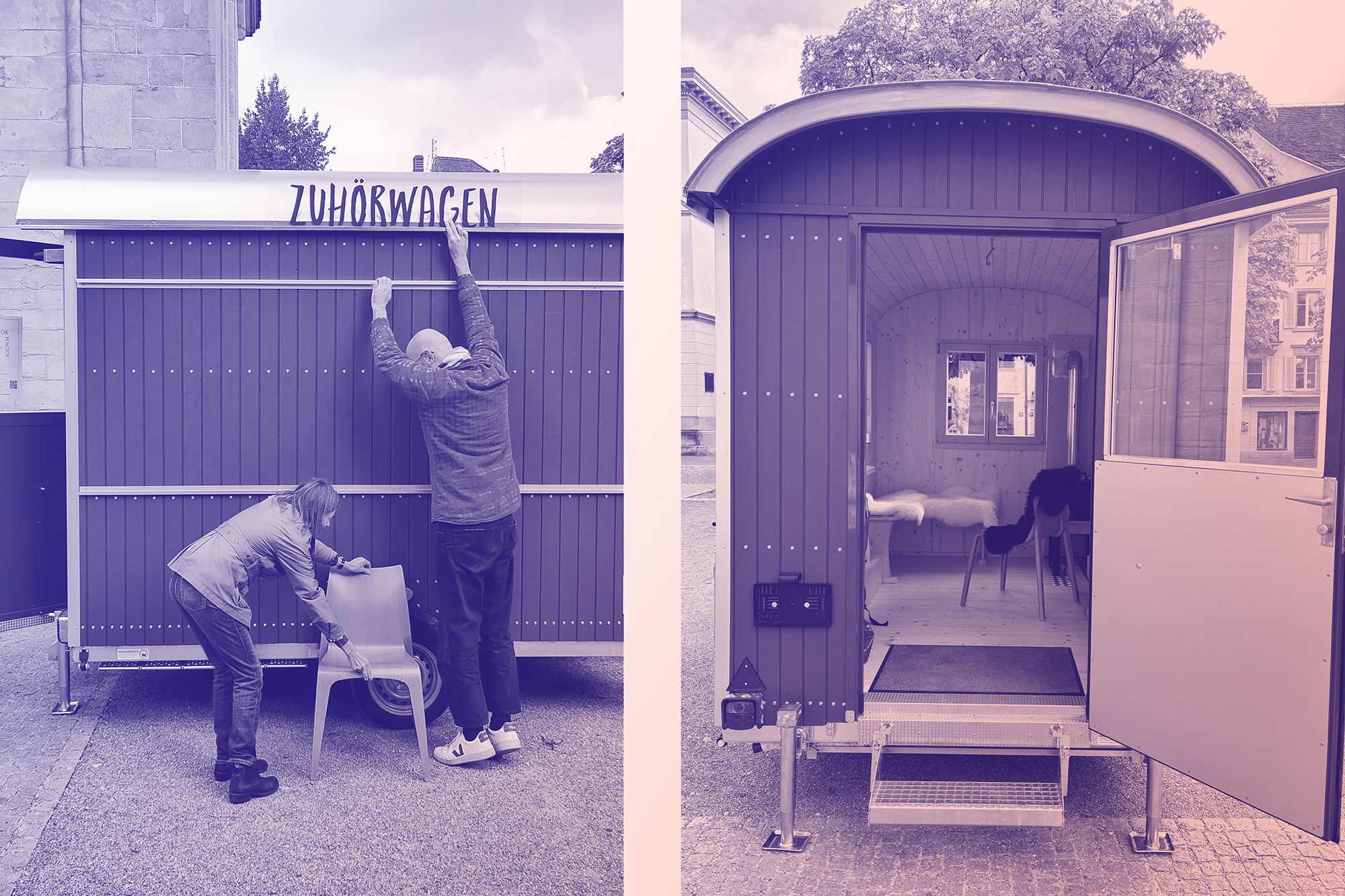 Das ZUHÖRWAGEN-Projekt ist eine gemeinnützige Initiative, die das Miteinander-Reden und das Einander-Zuhören mehr kultivieren möchte. Dahinter steht der Verein ERZÄHL DOCH MAL, initiiert von Antje und Caren, zwei unserer Orbit-Gspänli. In einem mobilen, barrierefreien Anhänger heissen freiwillig Zuhörende euch bis Ende des Jahres auf dem Kirchplatz willkommen. Danach zieht der Wagen weiter, vielleicht in dein Quartier? Schaut doch mal vorbei und erzählt, was euch gerade bewegt. Die Öffnungszeiten und alles weitere erfahrt ihr hier.