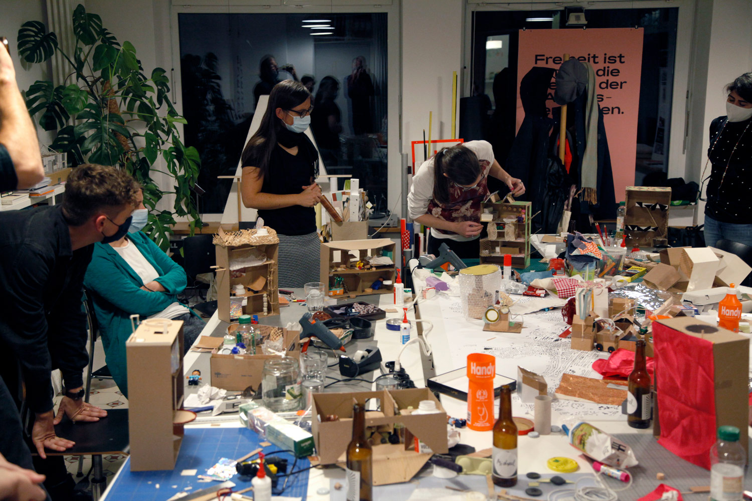 Wir luden ein, im Modellbauen darüber zu reflektieren. Interessierte erhielten ein Materialpaket mit Aufgabenstellung zum Thema nach Hause geschickt. Die entstandenen Modelle wurden ins Orbit zurückgebracht und im Schaufenster ausgestellt.